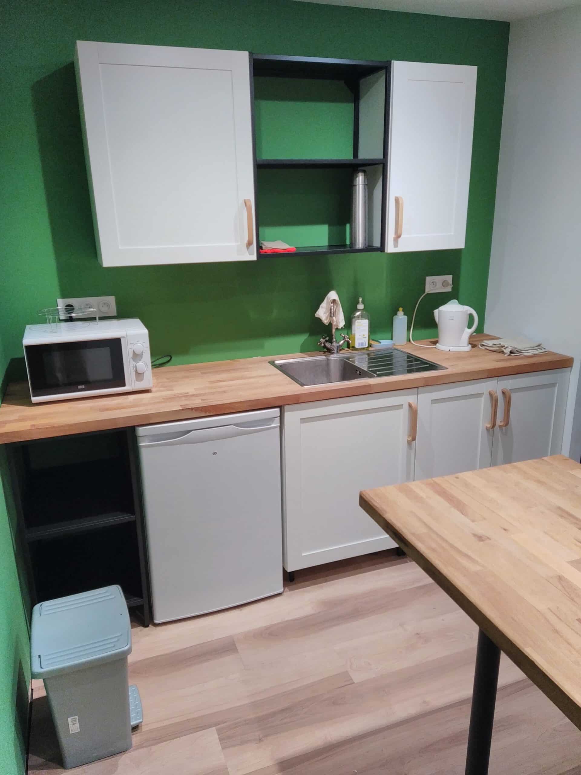 - à l’étage, d’un bureau, d’une salle de cours, tous deux dotés d’une climatisation réversible, ainsi que d’une petite cuisine.